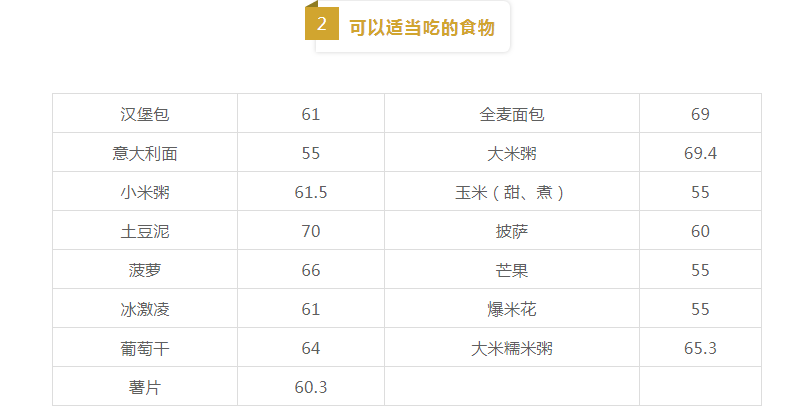 ◆當血糖生成指數(shù)在55~70之間時,該食物為中等GI食物;