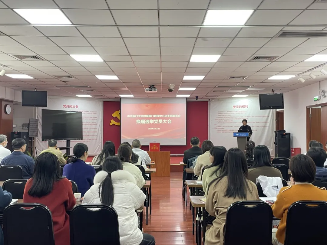 2月27日,廈門大學(xué)附屬廈門眼科中心召開全體黨員大會,順利完成了黨總支換屆選舉工作。會議由黨委副書記、業(yè)務(wù)副院長、斜弱視與小兒眼科學(xué)科帶頭人潘美華同志主持,廈門眼科中心第一黨支部、第二黨支部共70余名黨員參加。