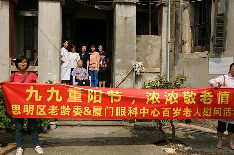 九九重陽節(jié),濃濃敬老情。在九九重陽節(jié)即將到來之際,10月11日上午,思明區(qū)老齡辦湯淑琴主任、思明區(qū)福利協(xié)會會長楊玲以及廈門眼科中心黃婉榮博士等醫(yī)護(hù)人員一行,在鼓浪嶼街道辦工作人員陪同下,來到鼓浪嶼4位百歲老人家中,親切看望并慰問百歲老人,為他們送去慰問金和慰問品,并由眼科醫(yī)院的醫(yī)生給老人常規(guī)健康體檢和眼部檢查,祝福老人們身體健康。