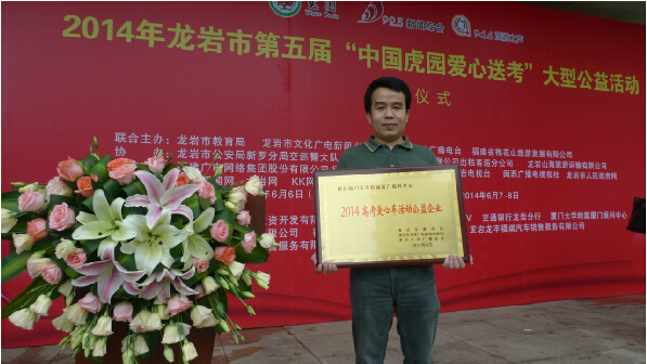 獲頒“2014高考愛心車活動(dòng)公益企業(yè)”榮譽(yù)牌匾