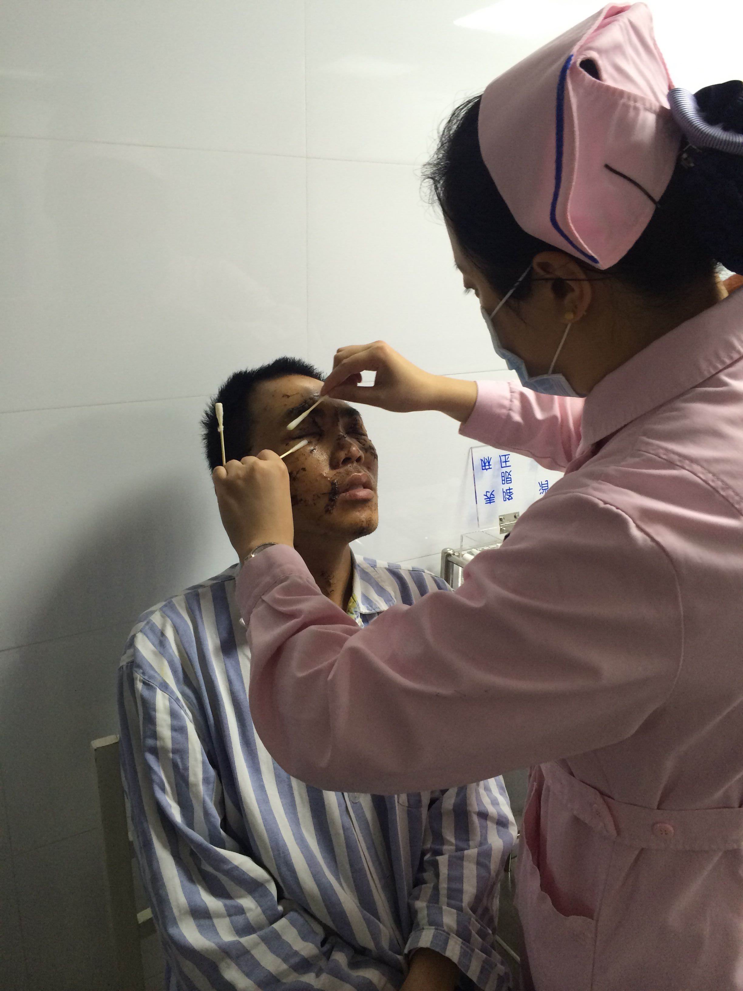 據(jù)廈門眼科中心眼外傷主任陳燕醫(yī)生透露,該患者入院時(shí)顏面部有多發(fā)性挫裂傷,面部10多處傷口縫了50余針,更為嚴(yán)重的是眼前房還在出血,左眼有挫傷,右眼有外傷性瞳孔散大,視網(wǎng)膜和視神經(jīng)也有一定的損傷,當(dāng)時(shí)的視力僅有0.3~0.4。陳主任表示,吳某的狀況主要是爆炸造成的沖擊波所致,還好送醫(yī)及時(shí)視力已經(jīng)矯正到了0.7~0.8,目前患者眼部的傷情基本得到控制。
