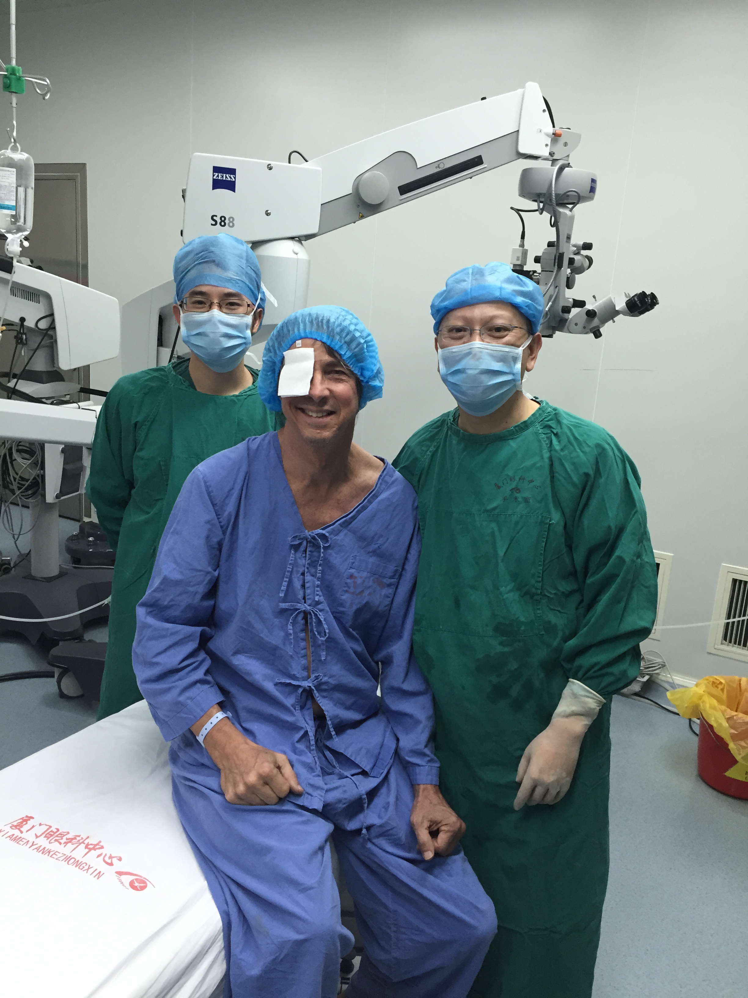 帕克來廈門大學(xué)執(zhí)教已多年,雖然很喜歡廈門,但是受以前觀念的影響,他一直對中國醫(yī)療水平存在很多疑慮,即便是右眼視物不清、變形多年,也不輕易到醫(yī)院去檢查治療,一心想回美國去治療。實際上,他的左眼白內(nèi)障手術(shù)就是三年以前專門回美國做手術(shù)的。現(xiàn)在帕克的右眼視力越來越不好,已經(jīng)影響到了他的工作和生活。童心未泯的帕克,喜歡游泳、喜歡拾貝殼、喜歡挖海螺等戶外活動,但近年來由于視物模糊、變形,帕克在出外游玩時鬧出不少笑話,比如:把石頭看做是貝殼等。帕克很苦惱,但他還是堅持認(rèn)為中國的醫(yī)療水平差,不愿意相信中國的醫(yī)生能挽救他的視力。