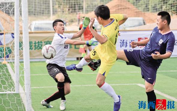 身著黃色球衣的眼科中心隊(duì)球員在對方球門前制造威脅