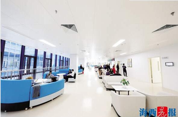 現代化的裝修、暖綠暖黃為主色調的環(huán)境讓人眼前一亮??剖议T診和住院樓層各種指引標識清晰明確,隨處可見溫馨提示,還有志愿導引人員。階梯形前臺,讓坐在輪椅上也能與醫(yī)務人員無障礙溝通。等候就診時,你可以在按摩椅上來一場放松之旅,也可以漫步VIP候診區(qū)長廊欣賞名畫。在休息區(qū),休閑吧和兒童游樂區(qū)等可以緩解診療時帶來的陌生感和緊張感。同時,五緣院區(qū)還配有超千個地面、地下停車位,方便“有車一族”到院泊車。