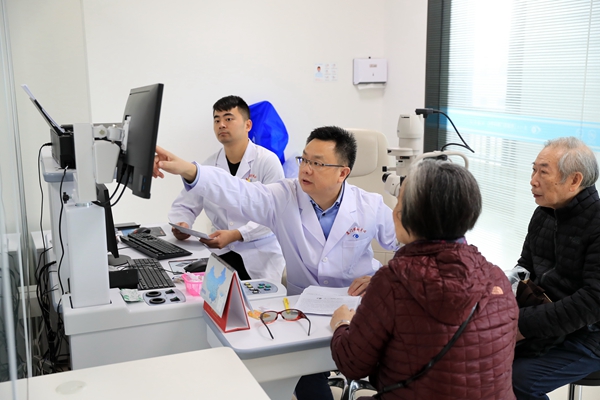 張廣斌院長在五緣院區(qū)為白內(nèi)障患者查眼
