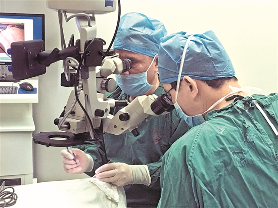 吳護(hù)平教授為患者實(shí)施角膜移植手術(shù)