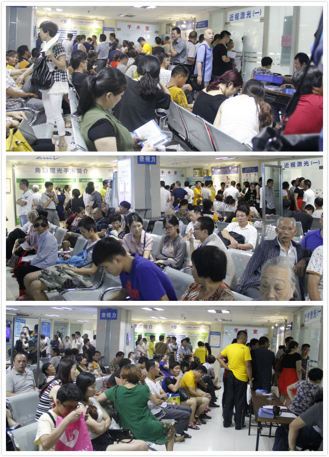 廈門眼科中心四樓視光科迎來高峰期 門診大廳人山人海