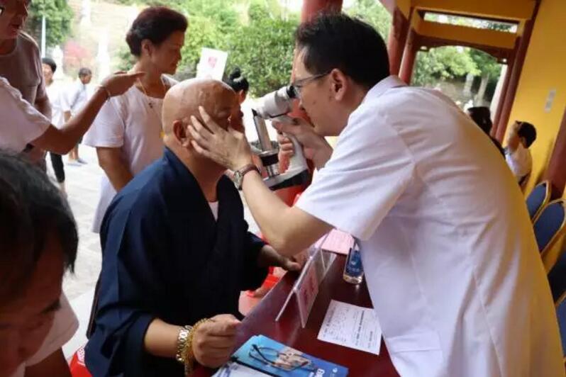 文阿姨的女兒對(duì)義診活動(dòng)大加贊賞,“趁著假期,一方面來寺院里拜拜,放空一下心情;一方面把家里的一些舊衣物拿來接濟(jì)需要的人。其實(shí),我時(shí)常參加寺里的一些慈善項(xiàng)目,比如關(guān)懷福利院兒童與老人、賑災(zāi)救難、公益環(huán)保之類的。沒想到今天遇到你們的義診活動(dòng),我們?nèi)胰硕紮z查了眼睛。消災(zāi)大法會(huì)是消災(zāi)解禍,眼疾篩查也是消災(zāi)解禍。你們這樣做公益送光明,也是功德無量。”