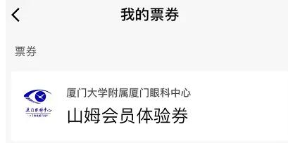到店告知參與廈門眼科中心山姆會(huì)員體驗(yàn)券活動(dòng)(請(qǐng)?jiān)诨顒?dòng)有效期內(nèi)使用福利)