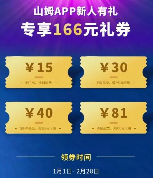 ◆ 老會(huì)員首次下載山姆APP獲贈(zèng)166網(wǎng)購(gòu)券