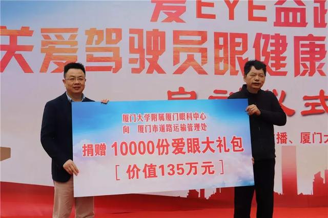 “關(guān)愛(ài)駕駛員眼健康公益活動(dòng)計(jì)劃于1月9日至24日,在廈門(mén)眼科中心五緣院區(qū)為1萬(wàn)名司機(jī)送上價(jià)值135萬(wàn)元的暖冬愛(ài)眼大禮包。禮包包括價(jià)值105元的眼健康體檢套餐(查視力、測(cè)眼壓、電腦驗(yàn)光裂隙燈、眼底檢查)和價(jià)值30元的油禮。”廈門(mén)大學(xué)附屬?gòu)B門(mén)眼科中心副院長(zhǎng)張廣斌介紹。