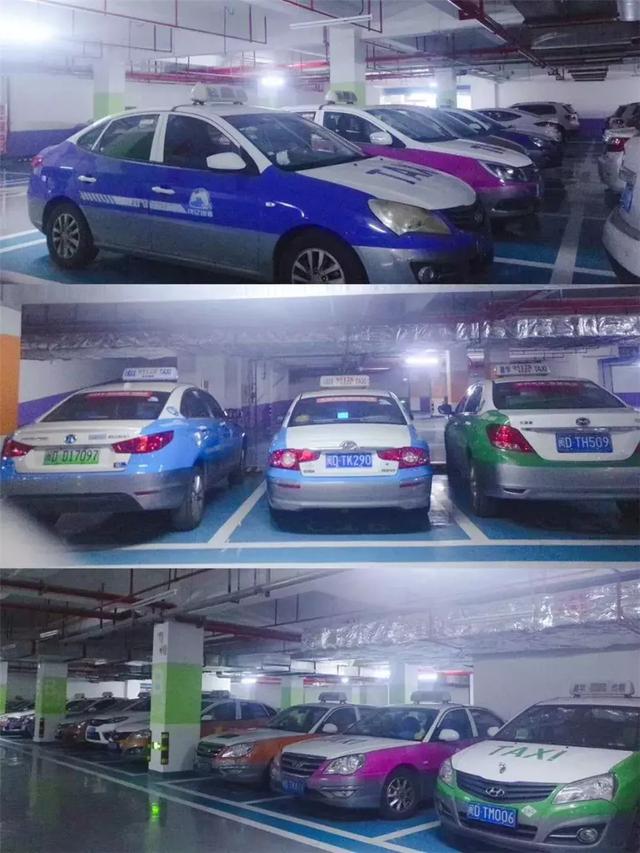 千輛級(jí)別的停車(chē)場(chǎng)停著司機(jī)朋友的各色出租車(chē)