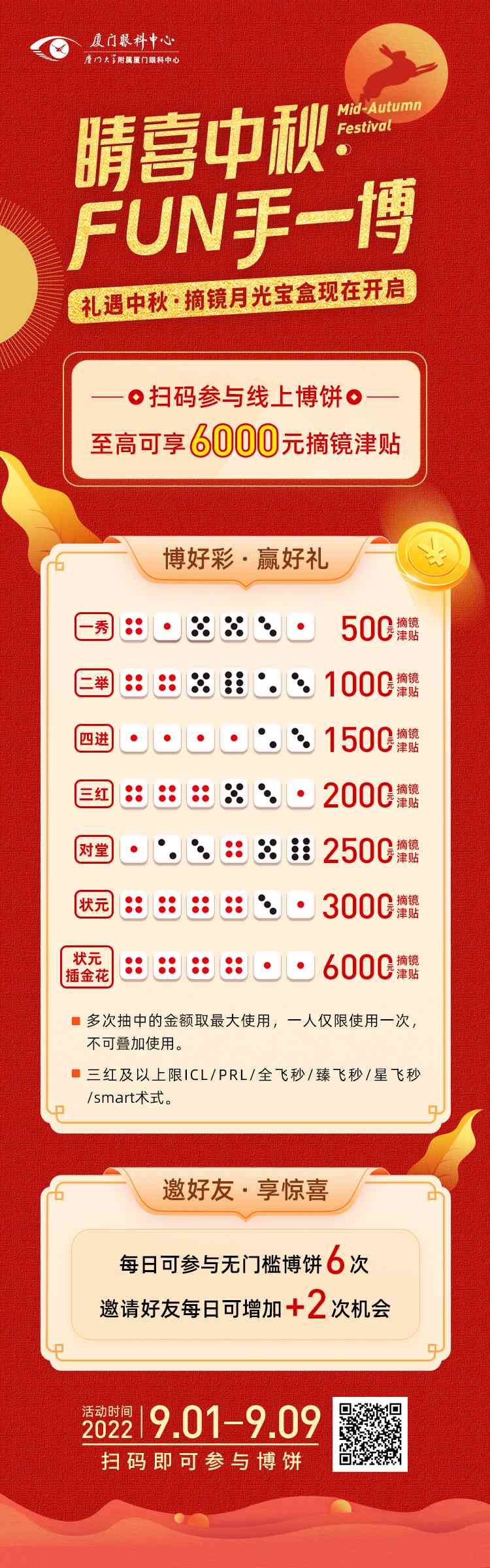 狀元插金花:6000元摘鏡津貼(限ICL/PRL/全飛秒/臻飛秒/星飛秒/smart術(shù)式使用)