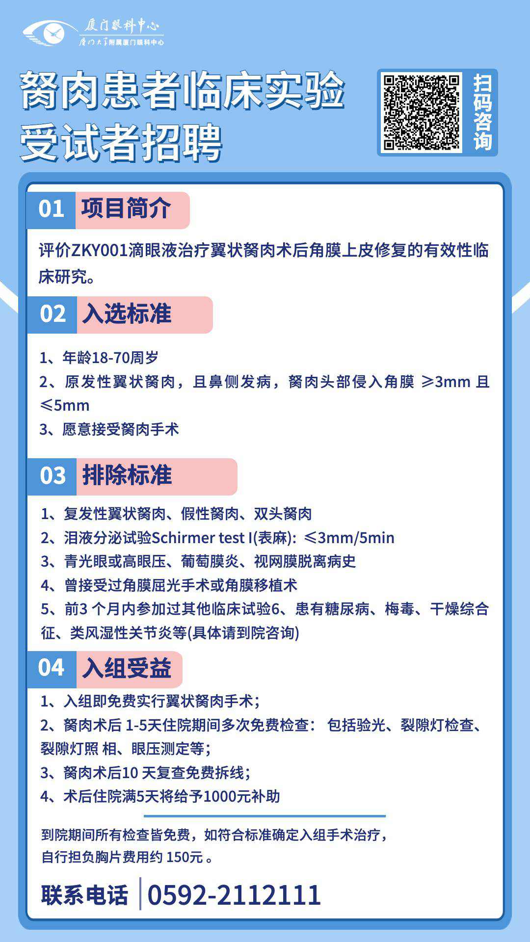 本次研究對(duì)受試者的個(gè)人信息將嚴(yán)格保密,所獲的所有信息將僅作研究分析之用。如果有可能符合以上條件或想了解更多信息的朋友,可以通過以下方式咨詢:0592-2112111
