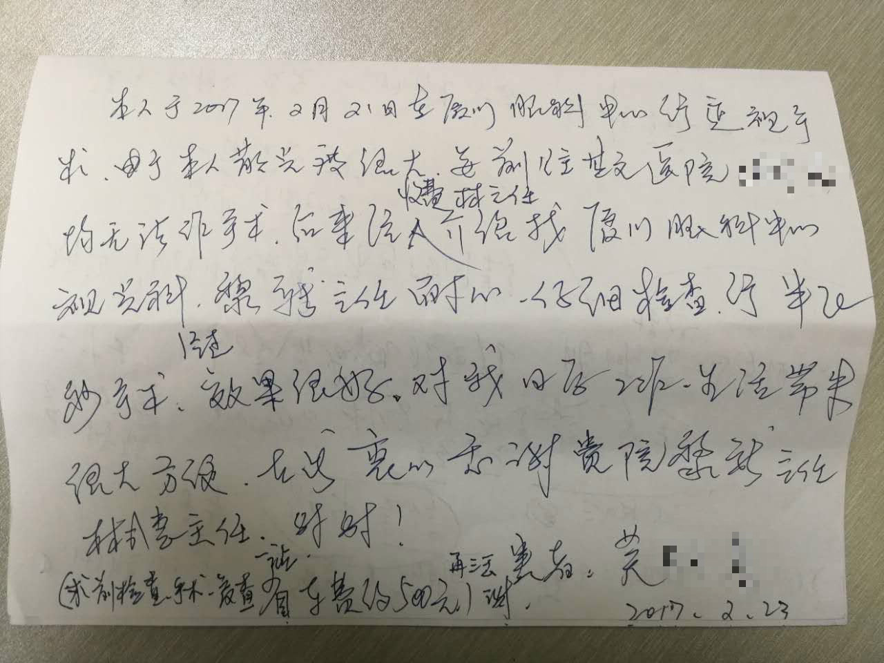 為此,小蔡還特地寫了一封感謝信,表達(dá)自己對醫(yī)生和工作人員的感激之情!