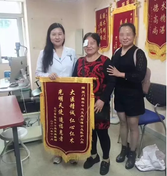 凜冬已至,寒流來襲。一天忙碌的工作才剛剛開始,廈門大學(xué)附屬廈門眼科中心青光眼??崎T診就熱鬧了起來,原來是已經(jīng)出院的患者曾大媽再次回到醫(yī)院,給王玉宏主任送來了一面錦旗。
