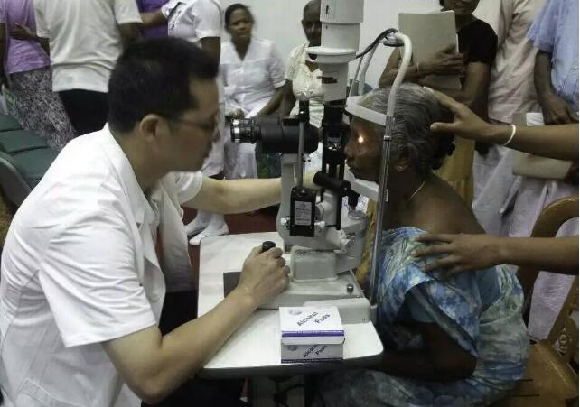 ▲毛祖紅主任為外國友人進行白內(nèi)障檢查