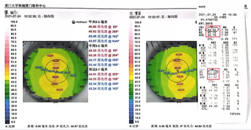 再看看涵涵停戴后的復查數(shù)據(jù),其角膜曲率幾乎沒有變化。