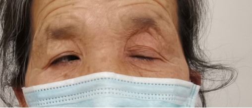 劉阿婆左眼眼皮耷拉下垂 無法自主睜眼