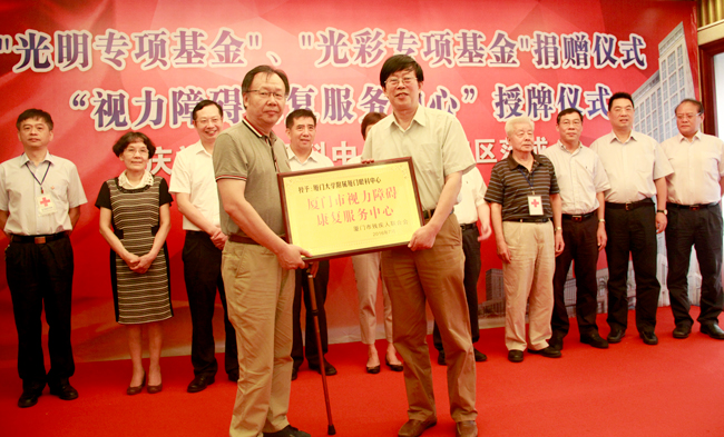 為了進(jìn)一步幫助低視力人群,我院被廈門市殘聯(lián)指定為“廈門市視力障礙康復(fù)服務(wù)中心”。黃菱、陳津、鐘興國等市領(lǐng)導(dǎo)出席捐贈儀式。儀式由廈門眼科中心院長黎曉新主持。