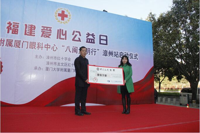 啟動儀式上廈門大學(xué)附屬廈門眼科中心向漳州市紅十字會捐贈100萬元,并成立“漳州市紅十字光明專項(xiàng)基金”,基金主要用于漳州貧困眼疾患者的救助工作。此外,當(dāng)天活動現(xiàn)場,來自廈門眼科中心的數(shù)名眼科專家還為從漳州各地前來參加活動的百名民眾進(jìn)行了“眼病義診篩查”。