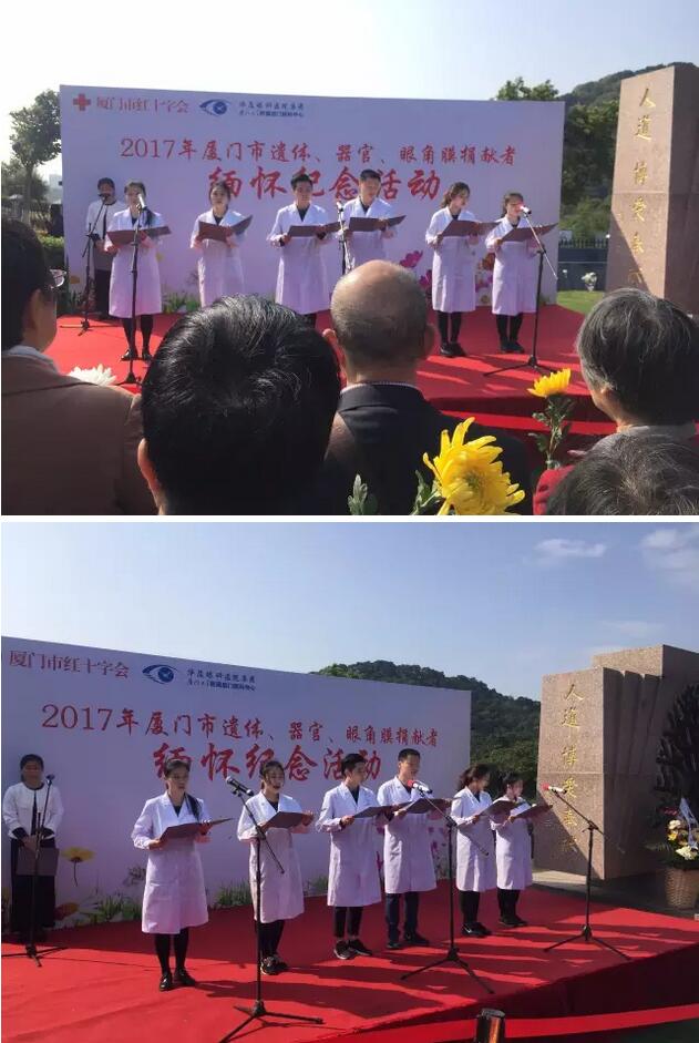 廈門(mén)大學(xué)附屬?gòu)B門(mén)眼科中心是福建省眼角膜捐獻(xiàn)指定的接收機(jī)構(gòu)。廈門(mén)大學(xué)附屬?gòu)B門(mén)眼科中心黨委書(shū)記陳逸恬在緬懷儀式上致辭,表達(dá)對(duì)生命的理性思考,對(duì)捐獻(xiàn)者偉大人格的崇敬之情。同時(shí)希望“人道、博愛(ài)、奉獻(xiàn)”的紅十字精神越來(lái)越被廣大愛(ài)心市民所接受和推崇,也希望更多的角膜盲患者能重獲光明,開(kāi)啟新的生活。