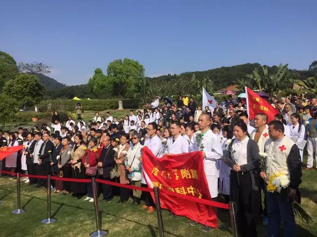 4月1日上午,廈門(mén)市紅十字會(huì)聯(lián)合廈門(mén)大學(xué)附屬?gòu)B門(mén)眼科中心在海滄文圃山陵園組織的2017年廈門(mén)市遺體與器官(組織)捐獻(xiàn)者緬懷紀(jì)念活動(dòng)順利舉行。捐獻(xiàn)者家屬、捐獻(xiàn)志愿者代表,廈門(mén)市紅十字會(huì)黨組書(shū)記、常務(wù)副會(huì)長(zhǎng)蘇蘇,廈門(mén)市紅十字會(huì)副會(huì)長(zhǎng)兼秘書(shū)長(zhǎng)俞娟,廈門(mén)市衛(wèi)計(jì)委醫(yī)政醫(yī)管處處長(zhǎng)陳糧,廈門(mén)大學(xué)附屬?gòu)B門(mén)眼科中心黨委書(shū)記陳逸恬,以及廈門(mén)海滄文圃山陵園開(kāi)發(fā)有限公司、廈門(mén)大學(xué)醫(yī)學(xué)院、廈門(mén)醫(yī)學(xué)院、廈門(mén)大學(xué)附屬?gòu)B門(mén)眼科中心以及各區(qū)紅十字會(huì)代表共300余人參加了活動(dòng)。