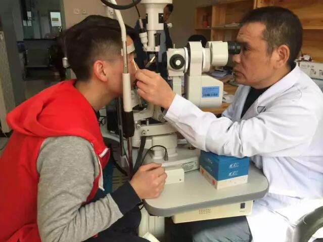 吳護平主任為角膜移植患者做眼睛檢查