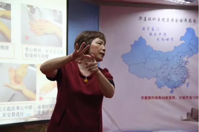 廈門(mén)市第*醫(yī)院院感管理部的葉麗娟主任現(xiàn)場(chǎng)教授“七步揉搓法”