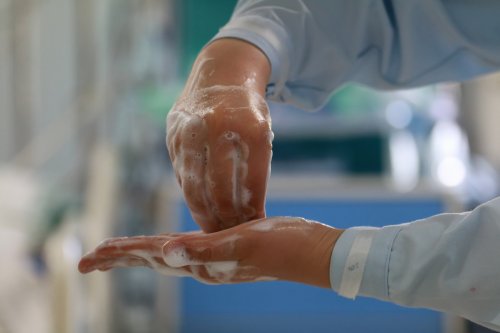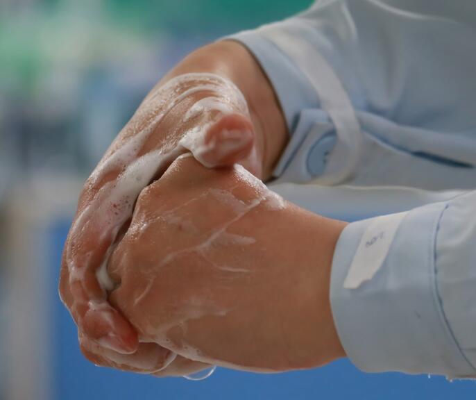 醫(yī)護(hù)人員練習(xí)正確的洗手方法