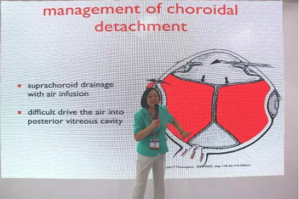 10點20分,廈門大學(xué)附屬廈門眼科中心總院長、國際眼科科學(xué)院院士、亞太玻璃體視網(wǎng)膜學(xué)會原主席黎曉新教授發(fā)表了題為《爆發(fā)性脈絡(luò)膜出血的處理》的演講。