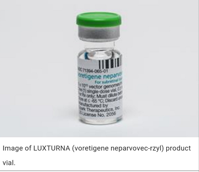 圣誕前夕,從美國傳來了重磅消息:“針對由RPE65基因突變導(dǎo)致的雷柏氏先天性黑朦2型(RPE65基因突變引起)的基因替代療法藥物L(fēng)uxturna(voretigene neparvovec-rzyl)獲FDA批準(zhǔn)上市!失明患者重見光明為時不遠(yuǎn)!