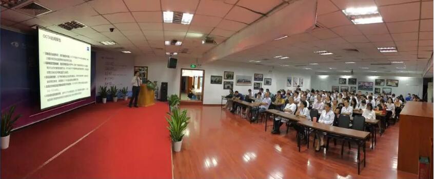 2018年8月30日,廈門眼科中心成功舉辦《OCTA臨床應用經(jīng)驗分享會》,吳國基院長主持,蔡錦紅院長、李明翰主任、眼底病和眼外傷學科全體醫(yī)護人員、特檢科全體人員、青光眼和小兒斜弱視學科臨床醫(yī)生等70余人參加。華廈集團資產(chǎn)負責人陳鴻萍邀請的蔡司高級臨床應用講師劉春經(jīng)理,為大家?guī)硪粓龈邔I(yè)水準的精彩課程。廈門眼科資產(chǎn)負責人陳澤峰、林檳帶領部門全體成員,組織協(xié)調(diào)完成各項會議籌備工作。
