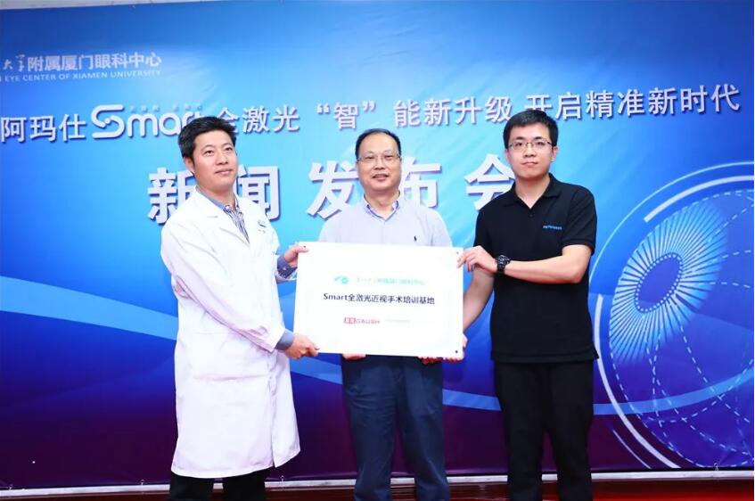 鑒于對廈門眼科中心手術專家團隊的高度認可,發(fā)布會上,張季經理代表阿瑪仕公司給廈門眼科中心頒發(fā)“Smart全激光近視手術培訓基地”榮譽獎牌。