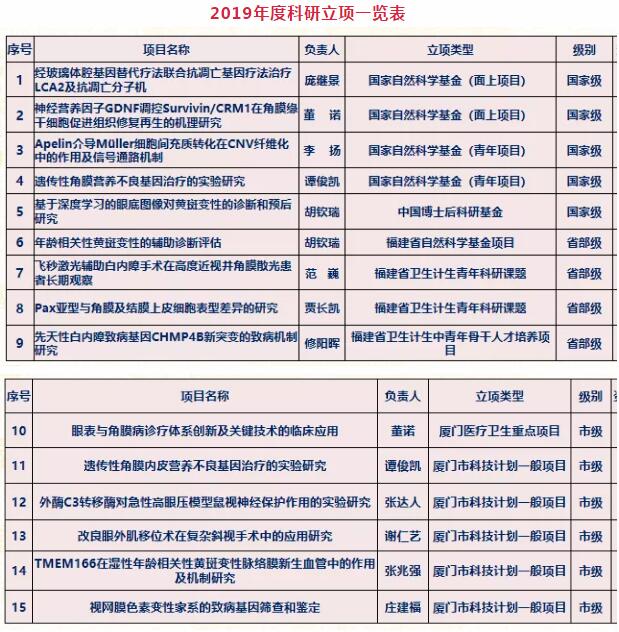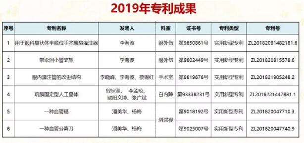 2019年全院發(fā)表SCI文章12篇,核心期刊文章31篇;5項(xiàng)專利獲得授權(quán);出版專著5部;在全國眼科年會(huì)投稿309篇,省級(jí)以上學(xué)術(shù)會(huì)議發(fā)言41人次。