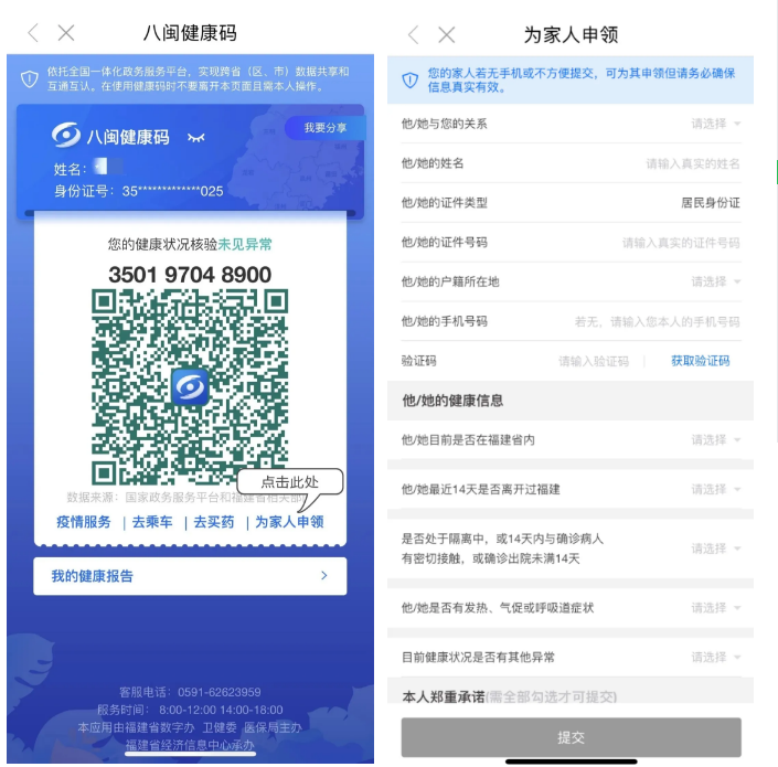 為家人申領(lǐng)健康碼