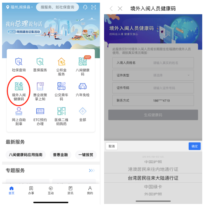 境外入閩人員申領(lǐng)健康碼