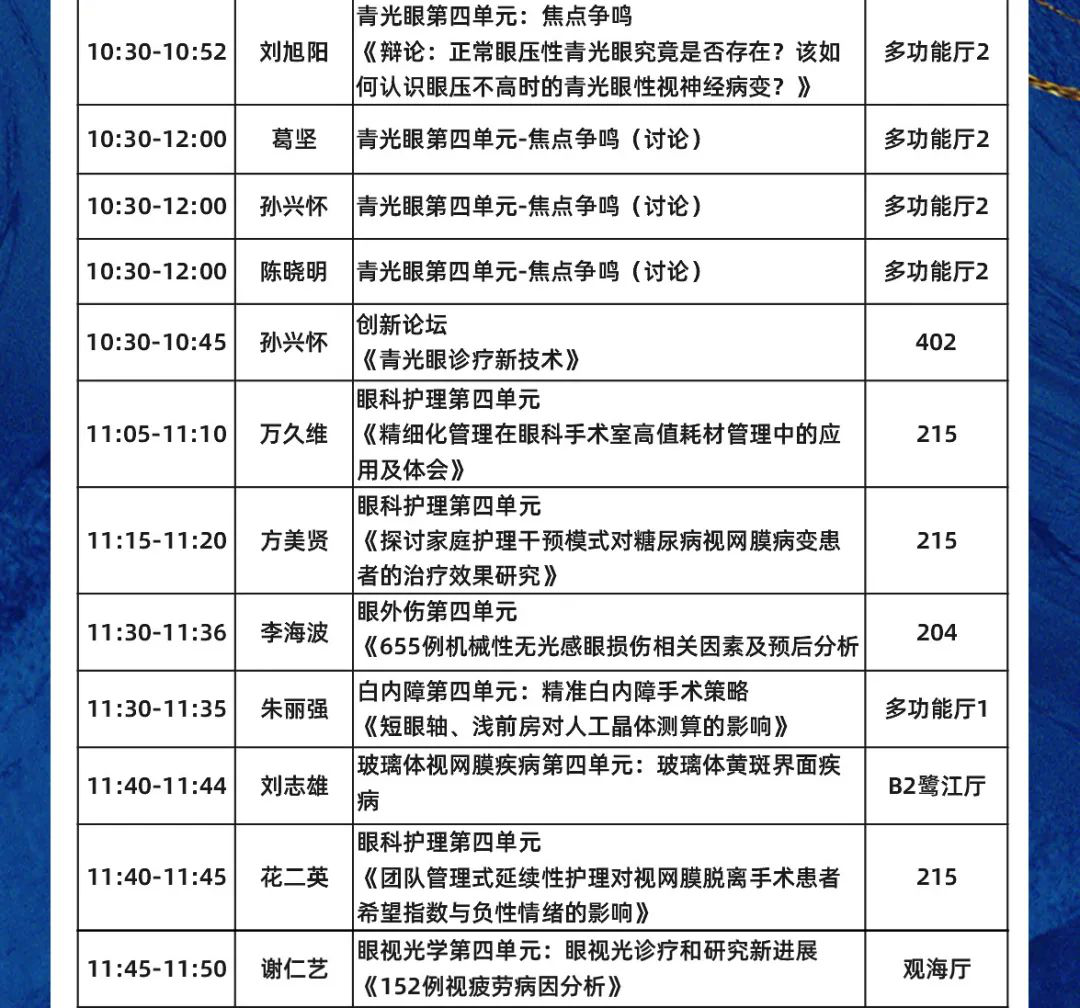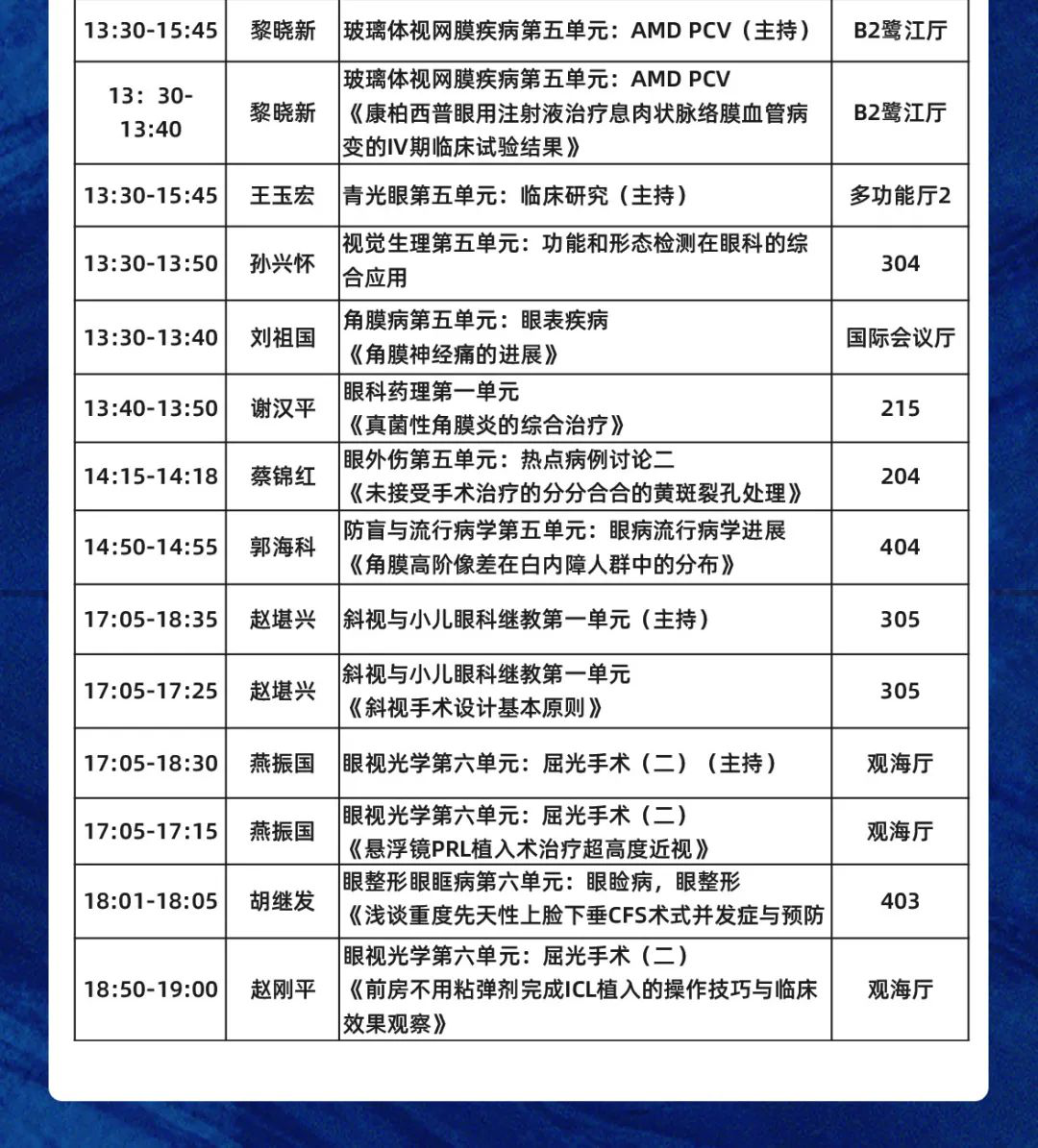 數(shù)十位廈門眼科中心專家受邀大會發(fā)言,涵蓋專題發(fā)言、論文發(fā)言、討論點評等。他們將圍繞眼科臨床診療新技術(shù)、新的防治措施以及科研、教學(xué)等方面的新進(jìn)展暢所欲言,多角度、多學(xué)科、多元化為眼科同道獻(xiàn)上一場學(xué)術(shù)盛宴。