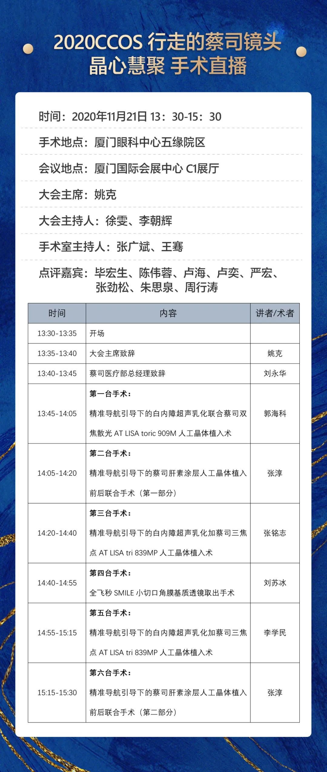 這個學(xué)術(shù)會議有點潮!為給廣大眼科臨床工作者打造一個開拓視野、提高技能的實用型的交流平臺,本屆年會還精心準(zhǔn)備了手術(shù)直播,涉及白內(nèi)障、屈光、眼底、青光眼等亞??疲膱鍪中g(shù)地點就在廈門眼科中心五緣院區(qū)。