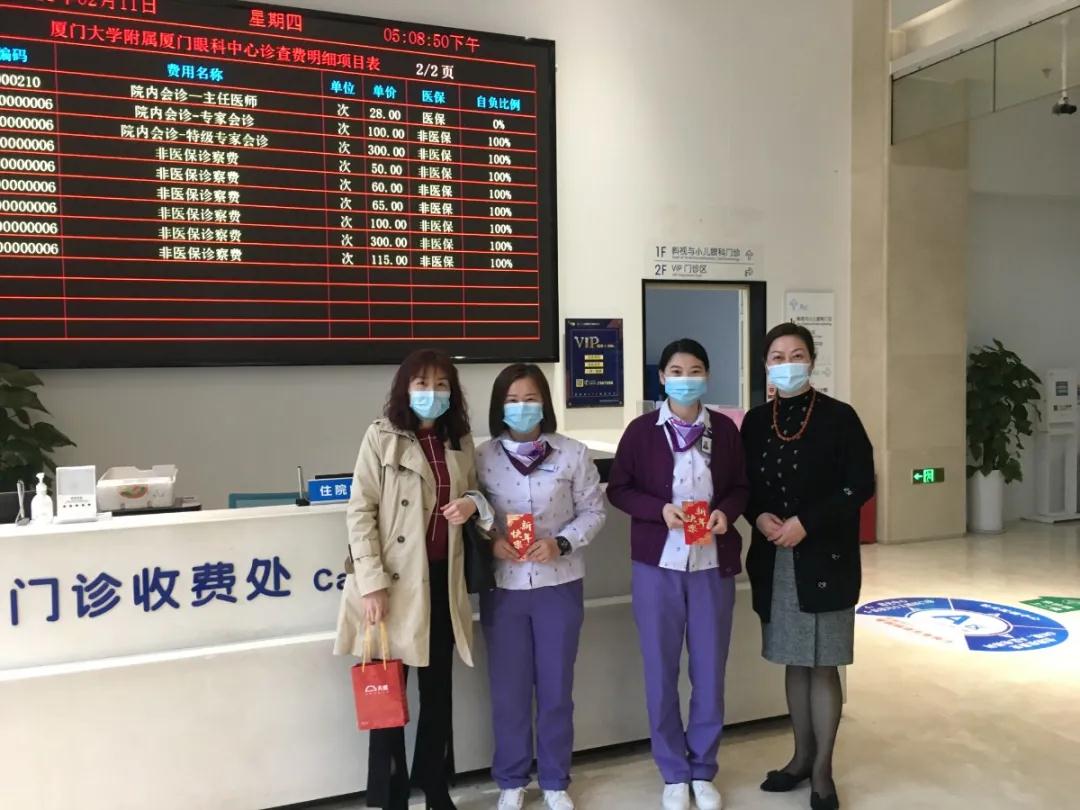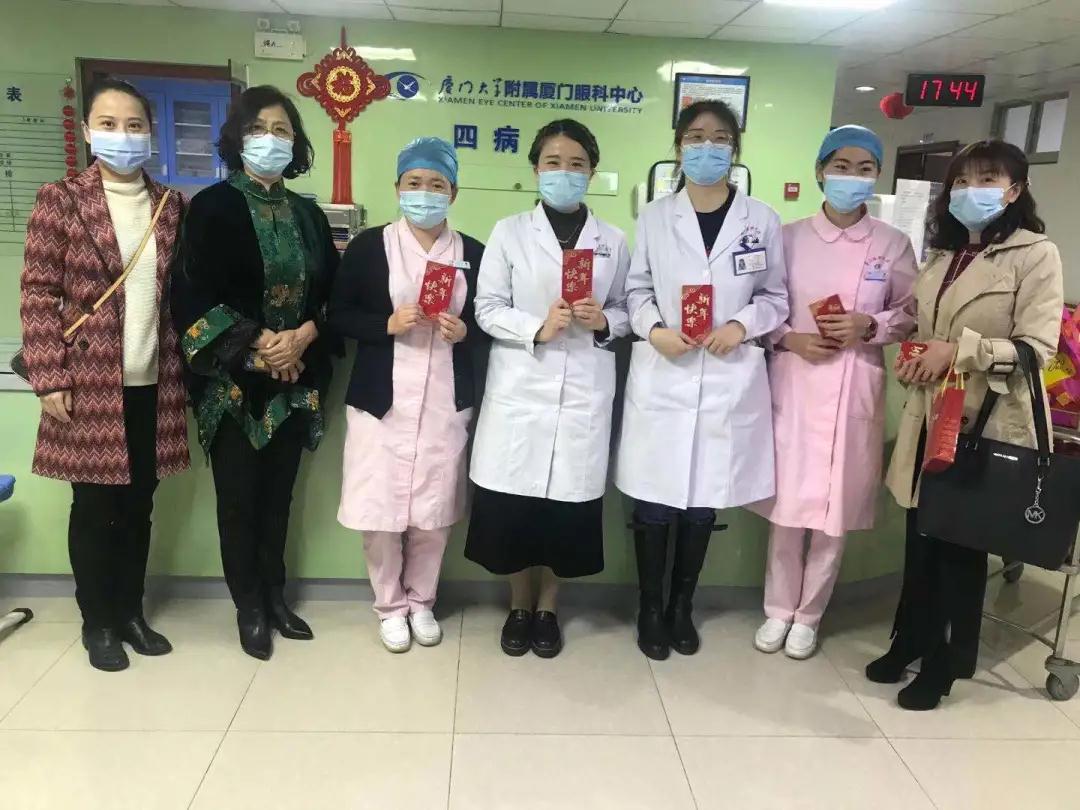 眼科醫(yī)院集團黨委書記陳逸恬、廈門眼科中心業(yè)務副院長潘美華教授、廈門眼科中心執(zhí)行總經(jīng)理姚鄭玲玲、廈門眼科中心副總經(jīng)理黃妮婭、廈門眼科中心物業(yè)部主任洪馬超等院領(lǐng)導班子成員及醫(yī)院中層干部深入病區(qū),看望并慰問春節(jié)期間堅守一線的醫(yī)務人員、值班后勤人員及住院病人,向大家送去了新年慰問品,并致以新春的問候。