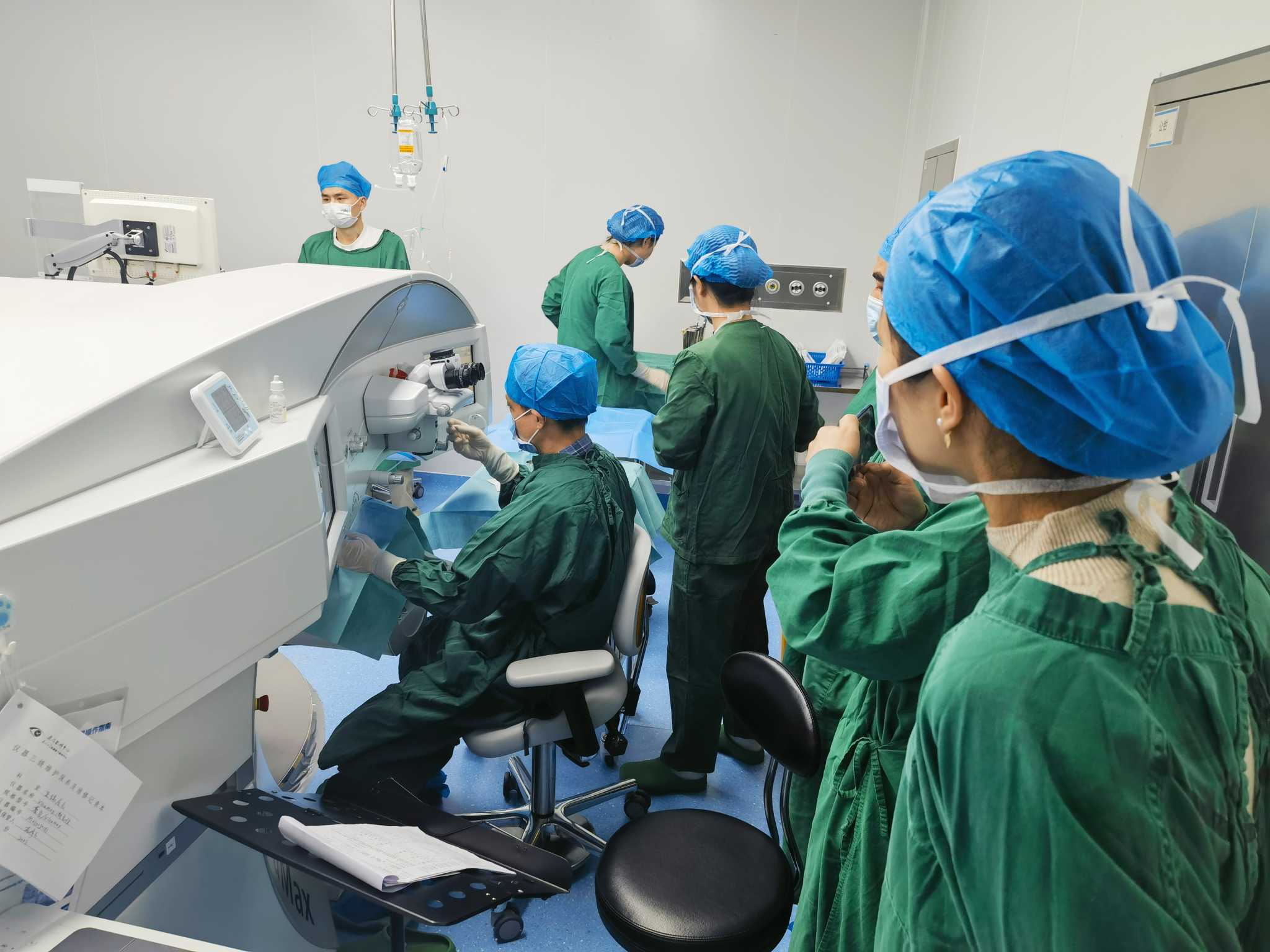 之后,學員們分組 進入手術室學習 ,在手術過程中,廈門眼科中心鄭林主任為學員細致講解全飛秒手術的基本技術要點,多角度展示全飛秒手術的操作技巧,讓學員們能夠更加清晰及直觀地近距離學習全飛秒手術,獲得更好的學習體驗。