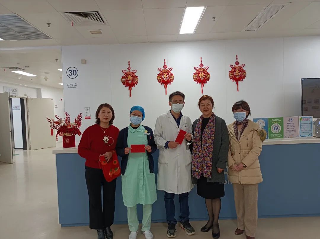 隨后,院領(lǐng)導(dǎo)一行來(lái)到病區(qū)慰問(wèn)住院病患及家屬,為他們送去節(jié)日的問(wèn)候和美好的祝福。院領(lǐng)導(dǎo)詳細(xì)了解住院患者的病情和治療情況,鼓勵(lì)他們積極配合治療,安心養(yǎng)病,早日與家人團(tuán)聚。暖意流動(dòng),泛起幸福的漣漪,真誠(chéng)的關(guān)懷讓病患和家屬們倍感溫暖。
