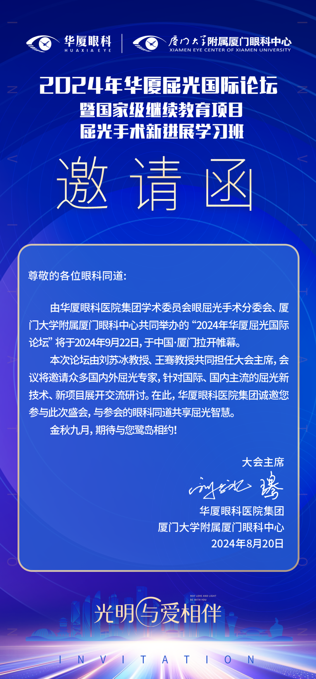 在此,華廈眼科醫(yī)院集團(tuán)學(xué)術(shù)委員會(huì)眼屈光手術(shù)分委會(huì)、廈門大學(xué)附屬廈門眼科中心誠邀各位眼科同道參加本次盛會(huì)。