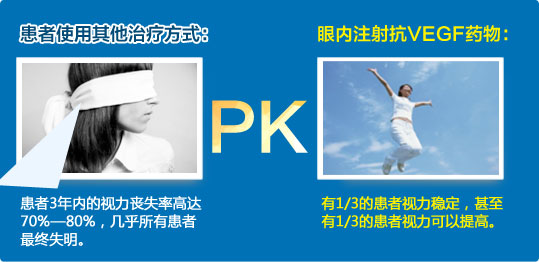 濕性老年性黃斑變性患者中心視力迅速喪失,嚴重的可在2~3個月內(nèi)失明,目前沒有有效的治療的方法,濕性老年性黃斑變性是抗VEGF藥物的治療適應癥。