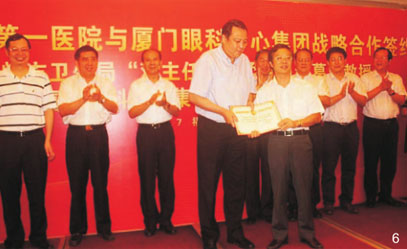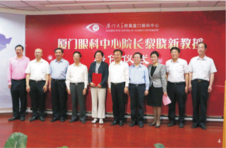 - 聘請黎曉新教授為廈門大學附屬廈門眼科中心院長。廈門市常委、組織部長陳秋雄(現(xiàn)為廈門市委副書記)頒布聘書,廈門大學黨委書記張彥等領(lǐng)導出席見證。