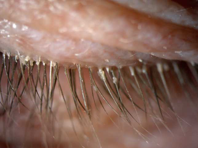 在廈門眼科中心檢查后發(fā)現(xiàn),在她的眼睛上竟然有大量的螨蟲,僅是檢查用的2、3根睫毛上就有8只,除螨蟲外,她的眼睛還出現(xiàn)了瞼緣炎以及干眼癥。