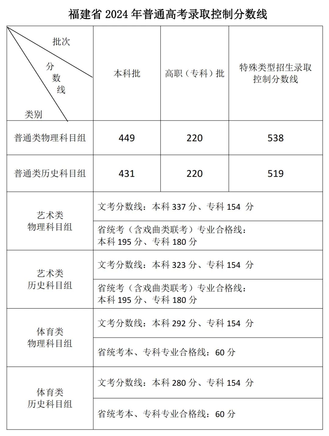 各類錄取控制分?jǐn)?shù)線公布