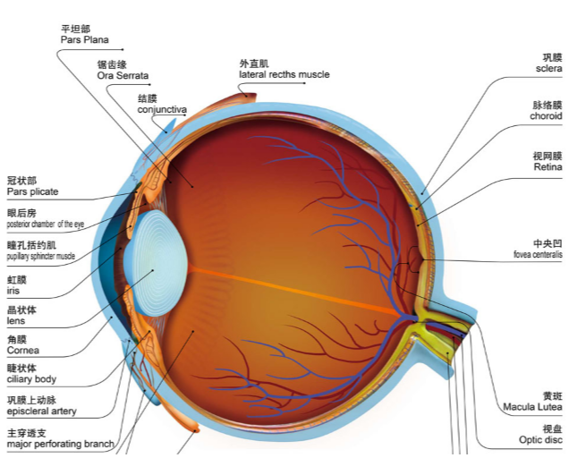 視網(wǎng)膜脫離(retinal detachment)是視網(wǎng)膜神經(jīng)上皮層與色素上皮層之間的分離。正常時,兩層之間除在視盤邊緣與鋸齒緣處有緊密連接外,其余部分需依賴色素上皮細胞微絲狀突觸包繞感光細胞外節(jié),以及黏多糖物質的黏合而疏松地附著在一起,視網(wǎng)膜才能發(fā)揮其生理功能。脫離部分的視網(wǎng)膜無法感知光刺激,導致視力下降甚至失明。
